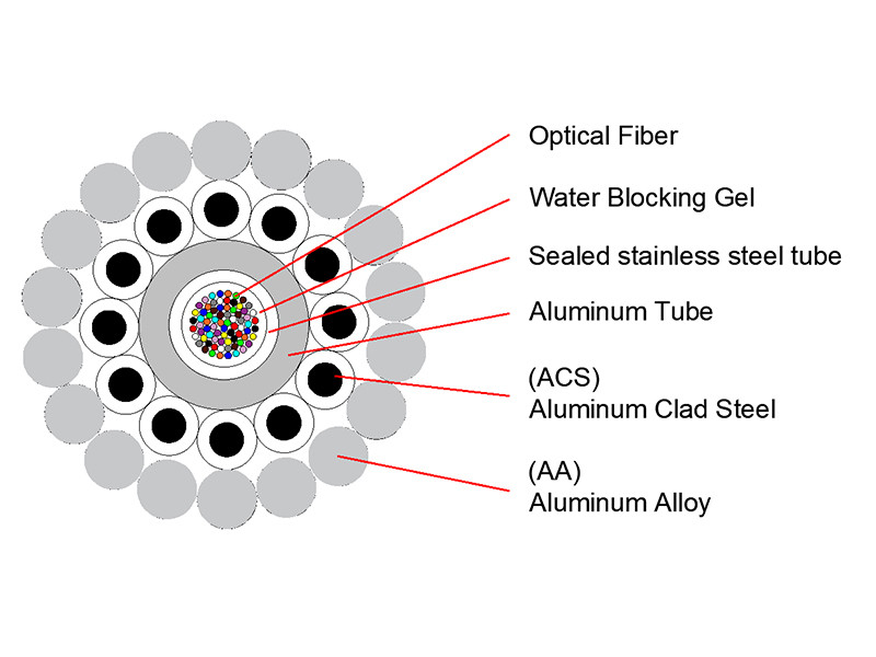 El cable de tierra óptico trenzado (OPGW) se fabrica con dos o tres capas de cables de acero revestidos de aluminio (ACS), o una mezcla de ACS y cables de aleación de aluminio. Este diseño está optimizado para satisfacer las demandas estructurales y mecánicas comunes de las líneas de transmisión de energía.